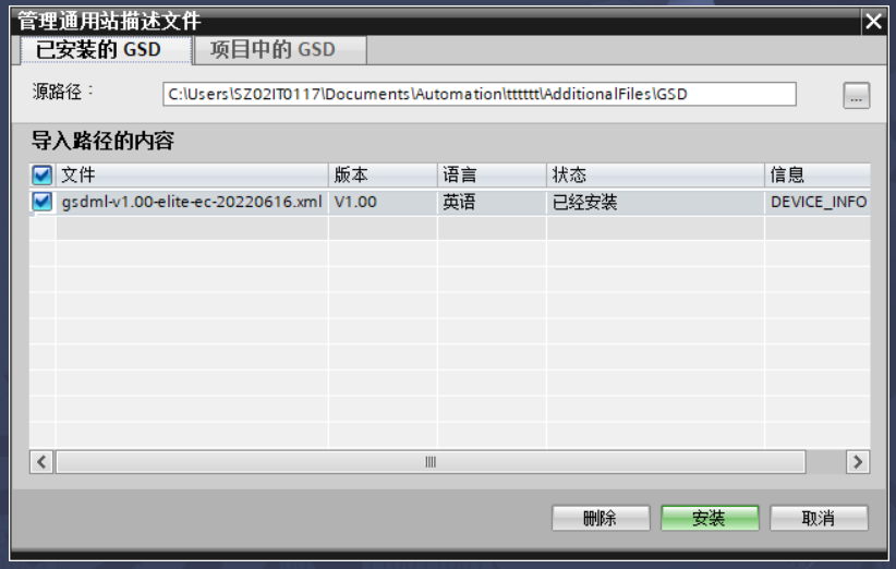 将下面链接的leyu.乐鱼(中国)机器人GSD 文件安装到 TIA PORTAL 中管理通用描述文件,如图 2-2 所示。