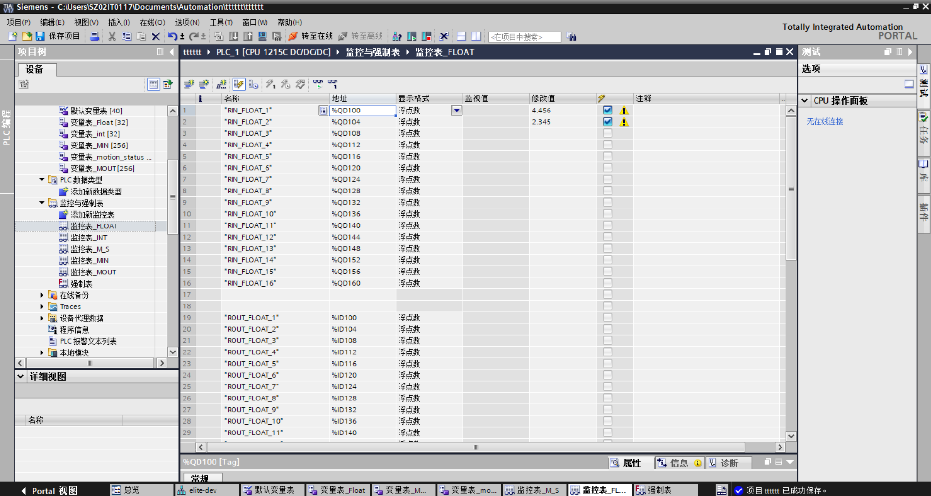 8. 添加完成之后,下入PLC,转至在线即可开始监视机器人状态与M变量。(32位以上要重启机器人,否则PLC会报错下位组件错误)。