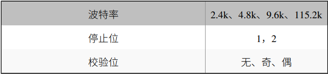 示例: ret= rs485_setopt (9600 ,8 ,"N",1)