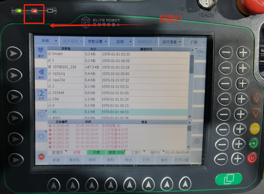 EC机器人死机时无法发送信号给机器人,在确保示教器屏幕没有损坏的情况下;反复确认发送信号至机器人比如打开拖动、拍急停、夹爪控制等;死机的时候一般伴随报警灯常亮。(通常死机可以通过断电重启复位)