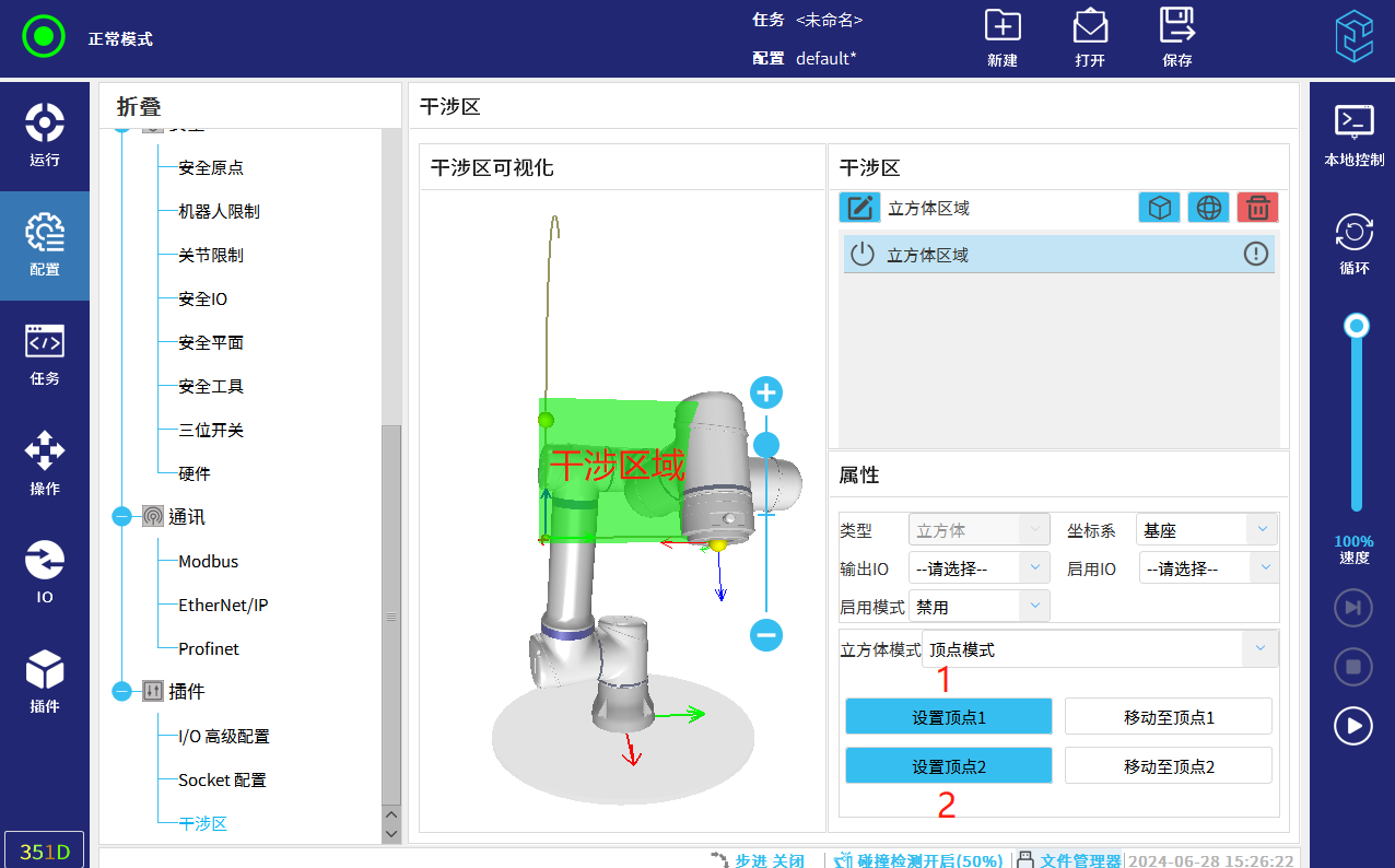 启用IO:通过设置对应DI 进行开启或关闭干涉区