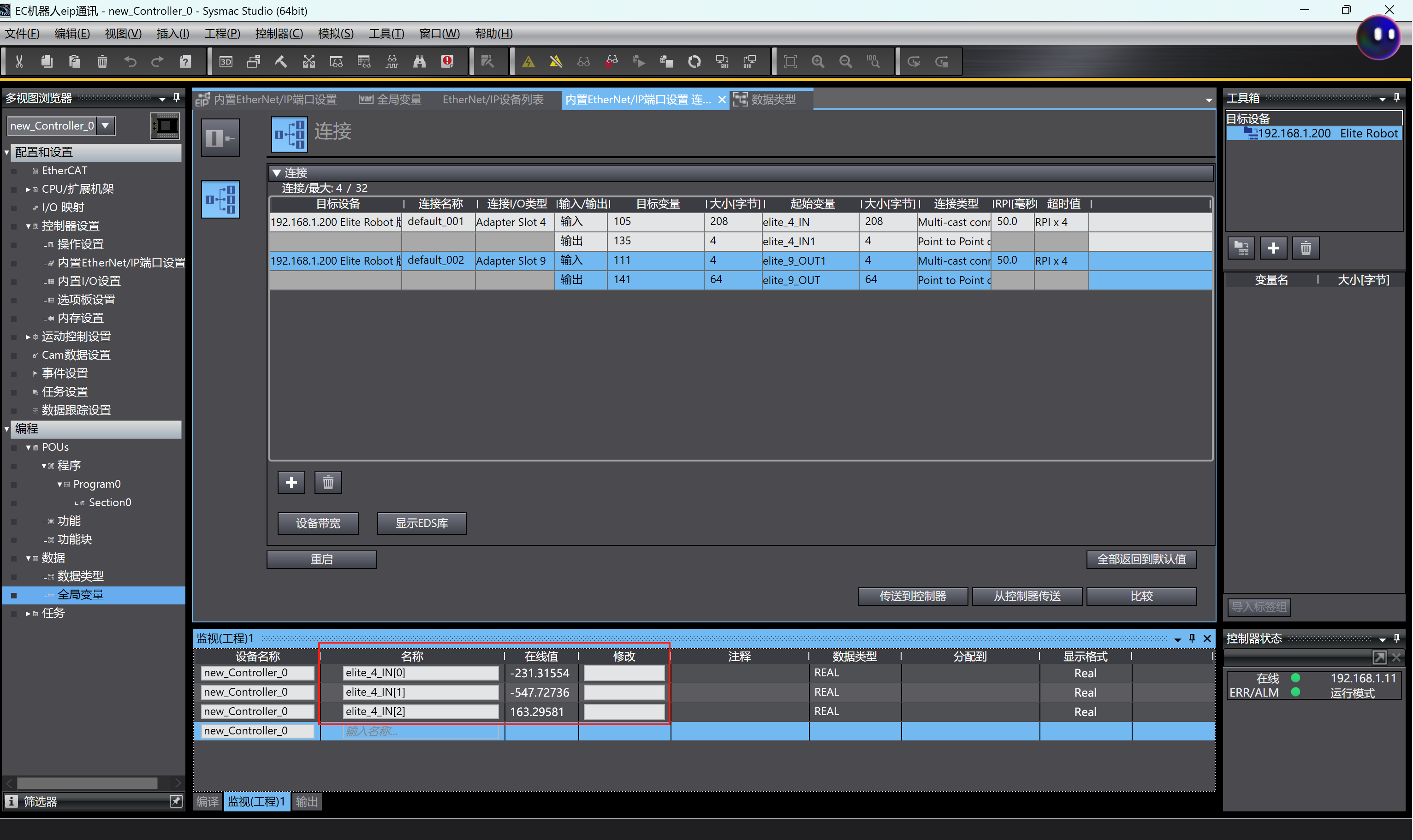 本篇文章使用EC机器人与欧姆龙PLC实现EthernetIP通讯 plc 型号:NX1P2-9024D