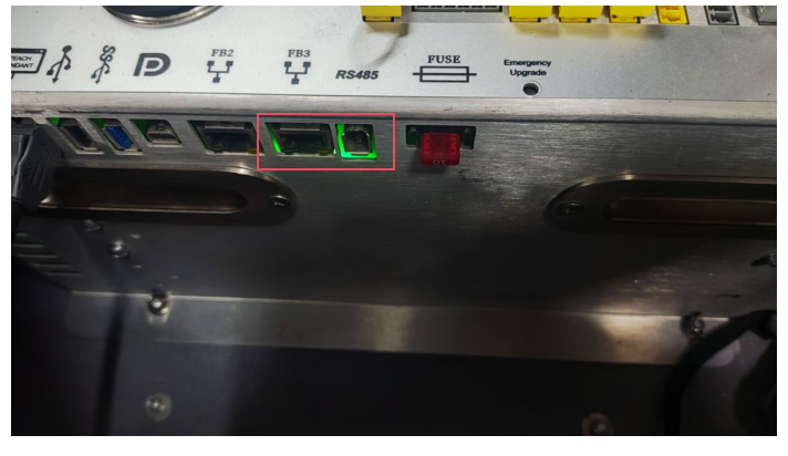 第一步:首先将控制柜电源线插上电源,将万用表红表笔插在图-5红框标记处,黑表笔插在绿框标记处测量是否有220V,如果有220V就按照第二步去排查保险丝是否烧掉了。