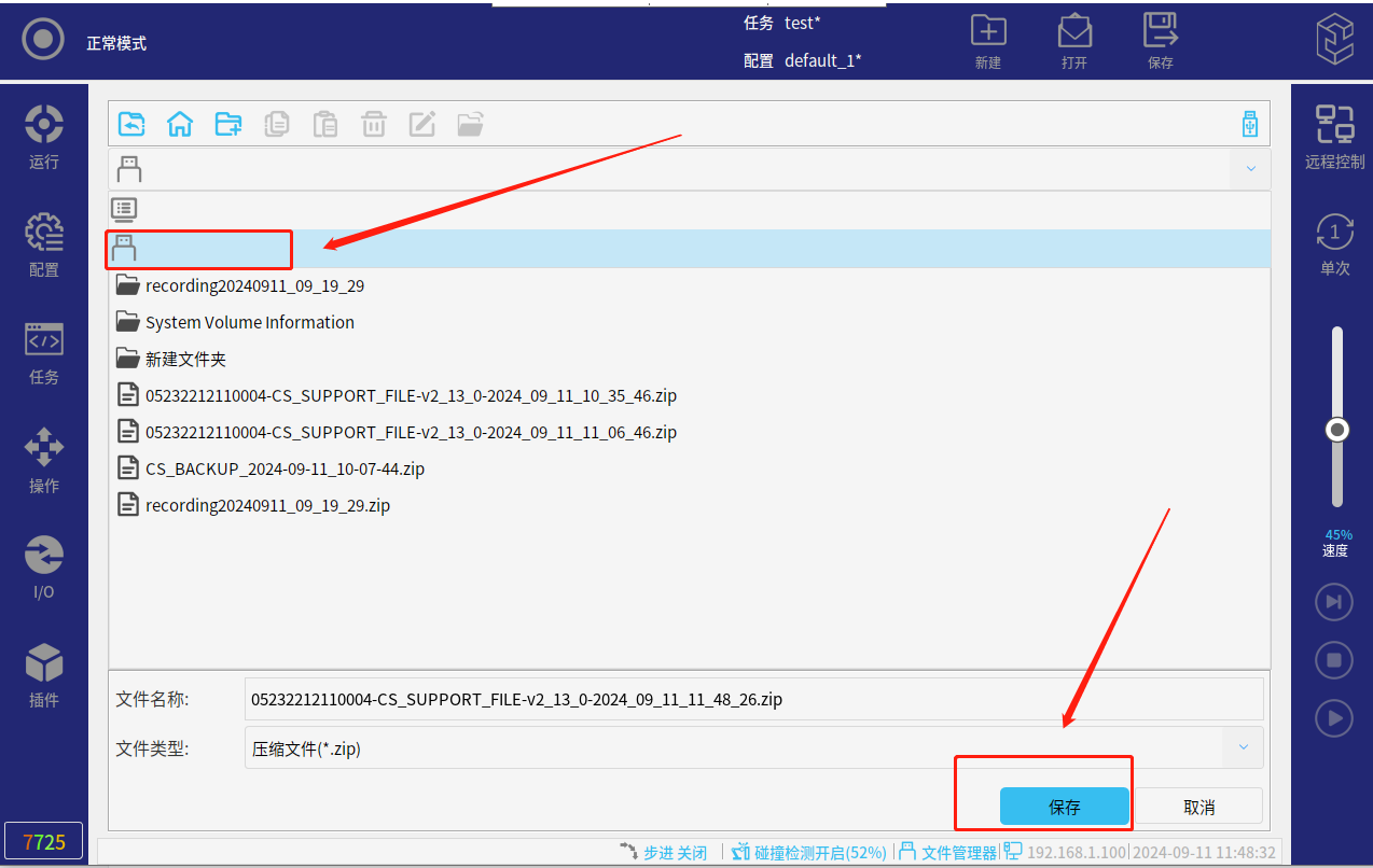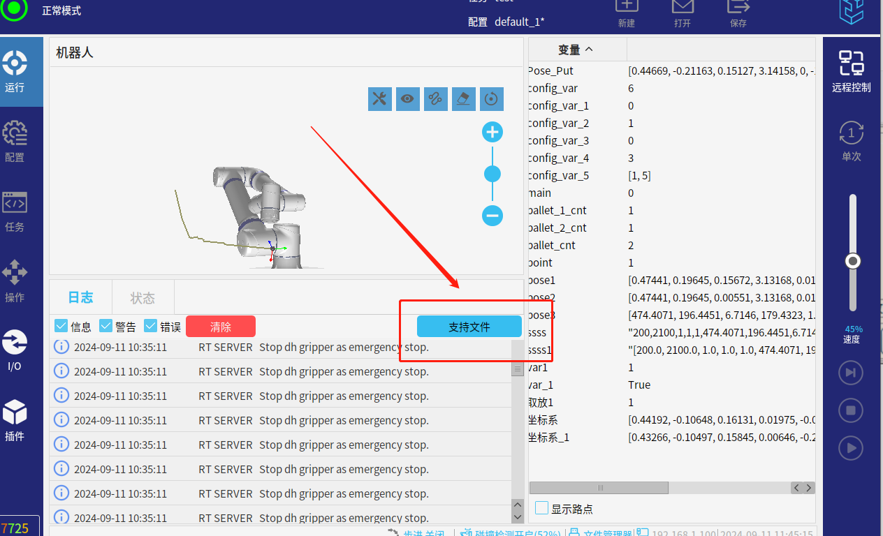发送后机器人应该会按照脚本指令运动,无论是否运动,我们都可以导出支持文件查看: