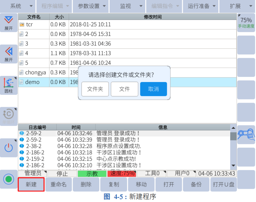 创建一个程序,点击“新建”,会弹出一个界面,如图 4-5 所示。