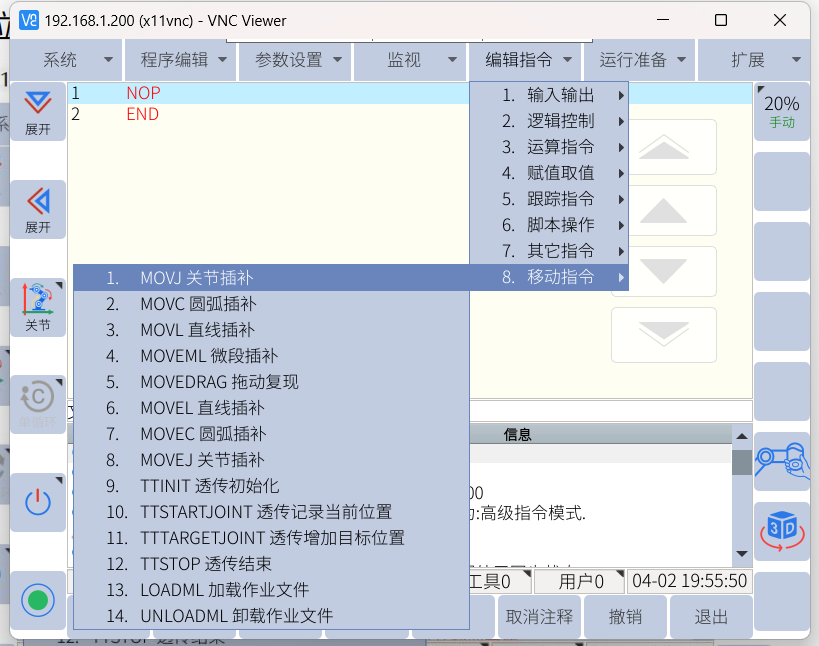 5. 选择移动指令后,编辑参数,按“确认”插入。