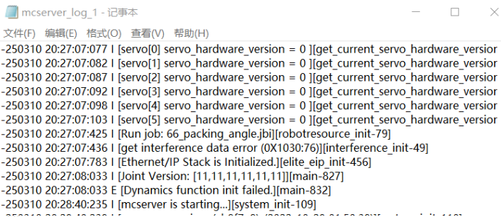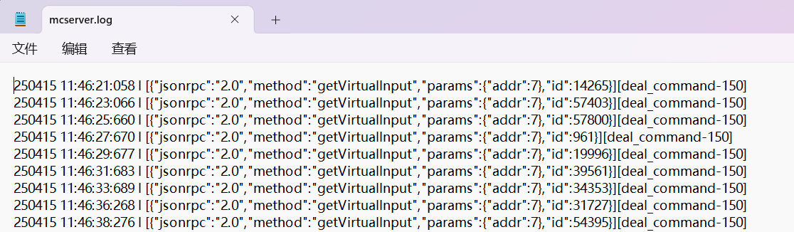 mcserver.log 是上位机运行日志,供设计人员排查错误。