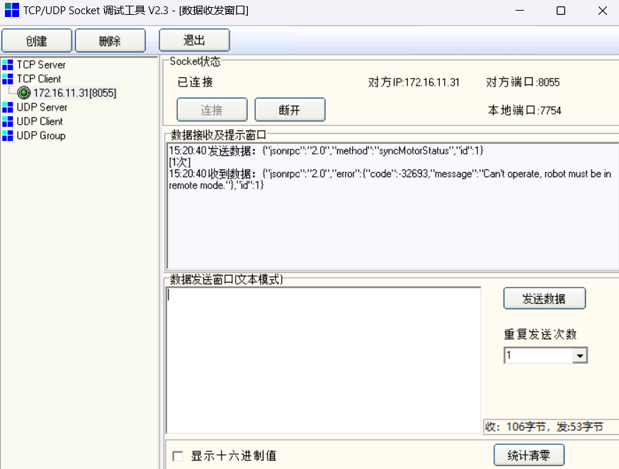 3、  该日志通过缓存刷新,如果上位机发送指令太少则不会在日志中记录,缓存到一定数量才会加载到日志中。(可通过登录网页版示教器增加缓存量,网页版示教器每 2秒自动缓存一条日志;也可上位机多发一些指令增加缓存量)