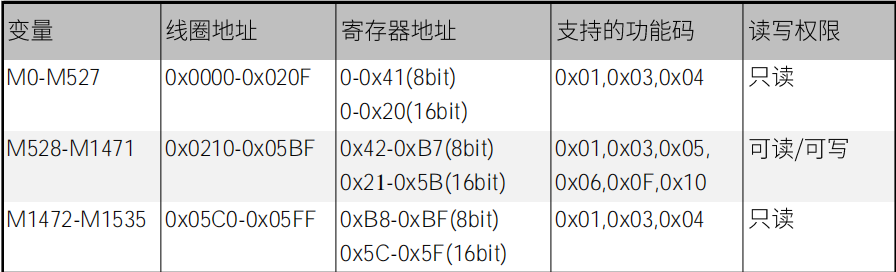 其中M变量支持的功能码如下图: