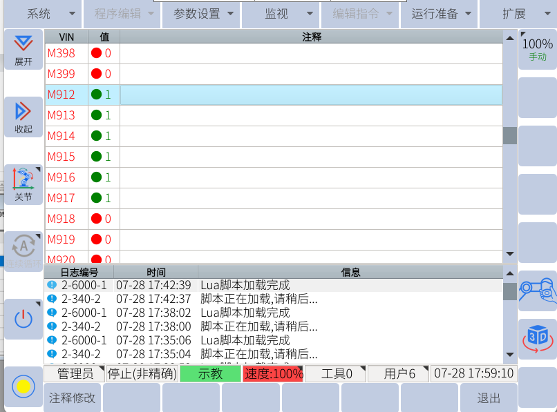 机器人端虚拟输入M912-M917此时状态都为1
