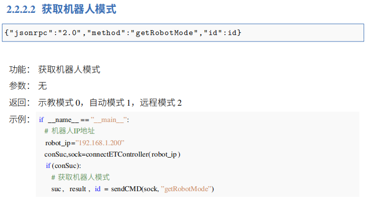 发送:{"jsonrpc":"2.0","method":"getRobotMode","id":1}