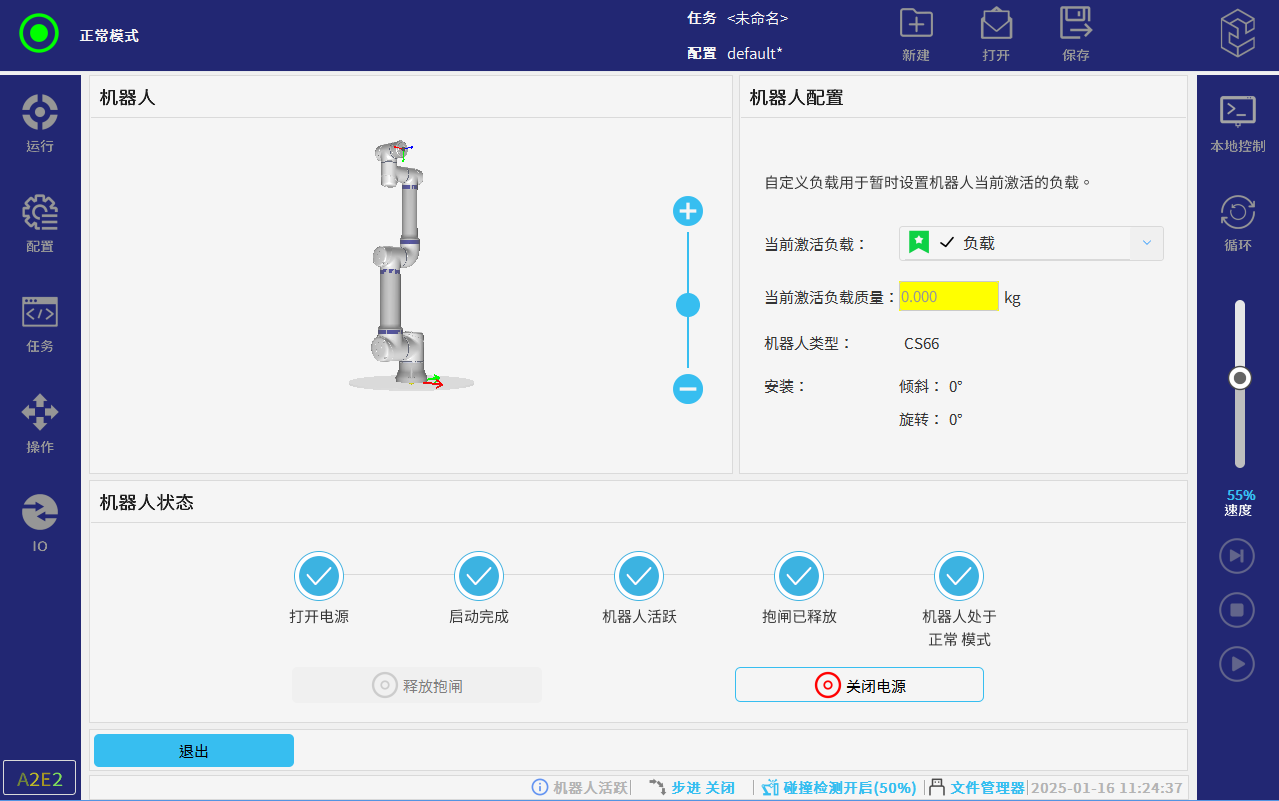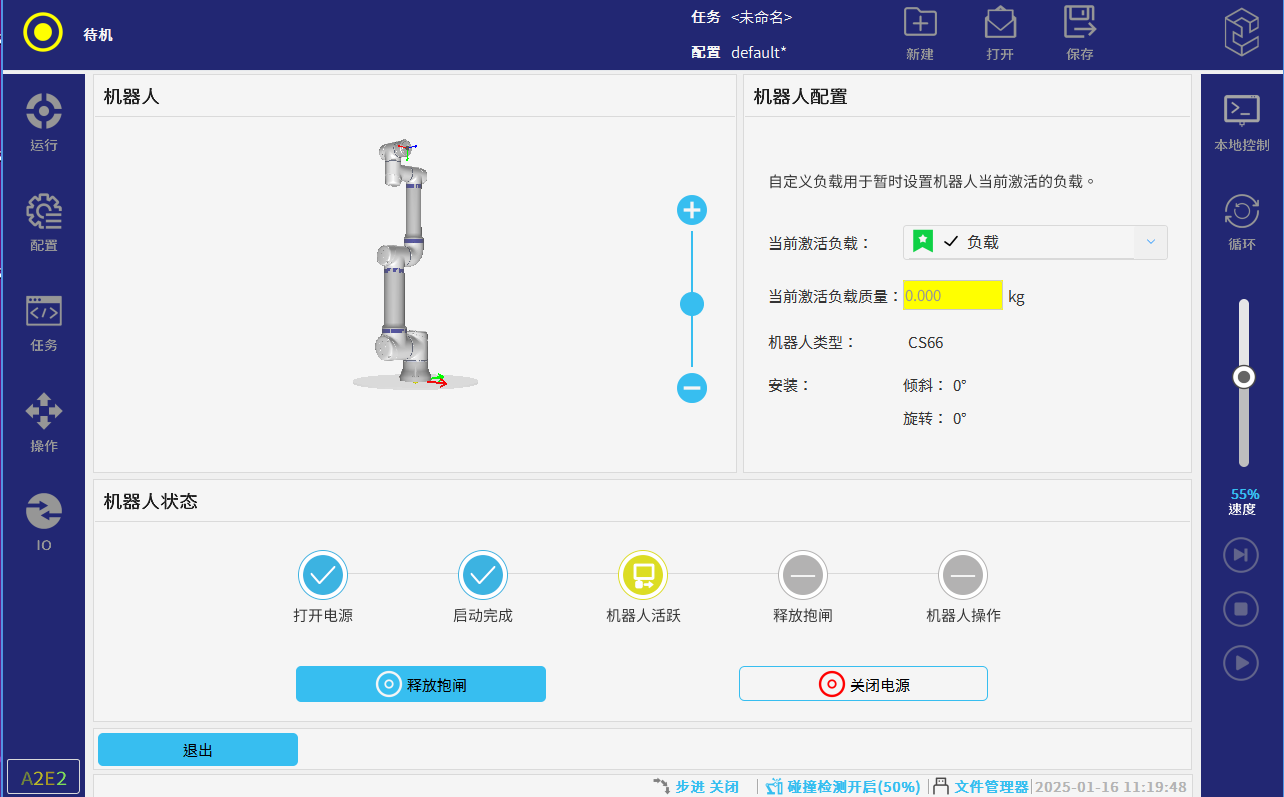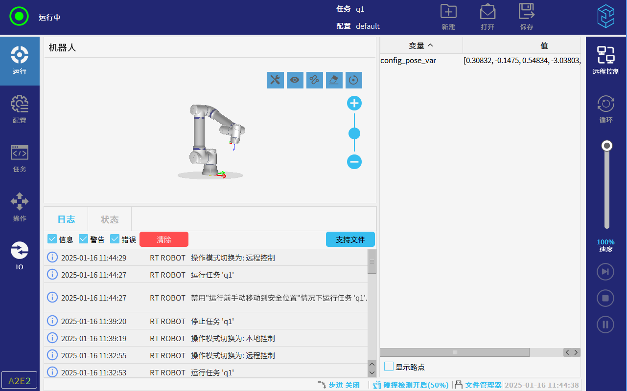 客户应用场景中可能会要求使用 SDK 来开发,下面介绍 SDK 启动机器人方法,过程中请保持机器人为远程模式,与示教器操作大体一致只是以代码的形式分步执行,打开电源,释放抱闸等功能,至机器人处于正常模式后运行。