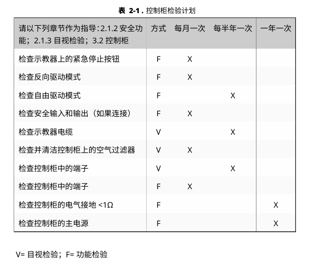 3.  检验控制柜与机器人本体之间的电缆是否有任何损坏;