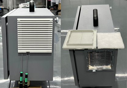 ● 从控制柜中取出过滤器,并用低压空气彻底清洁;