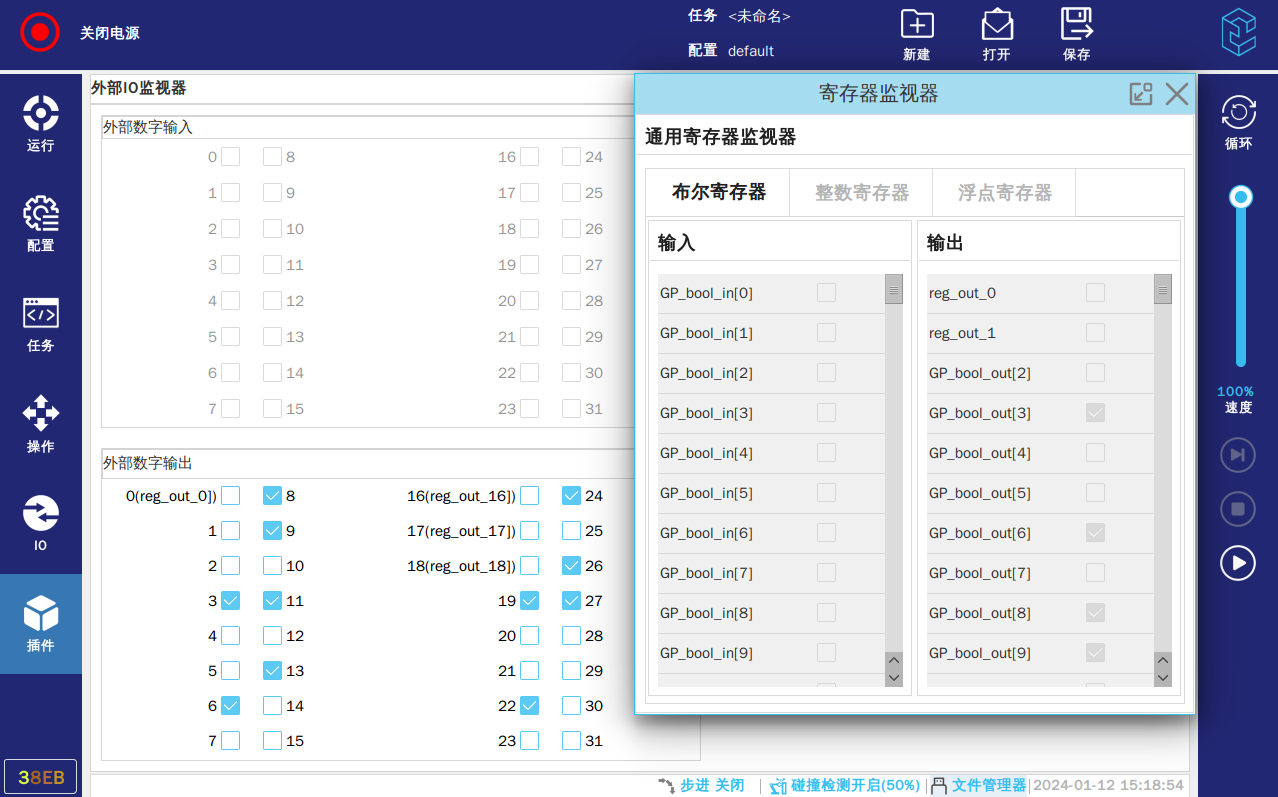 ● IO拓展模块插件映射寄存器搭配高级专用配置来实现控制任务的启停,机器人的上电等功能