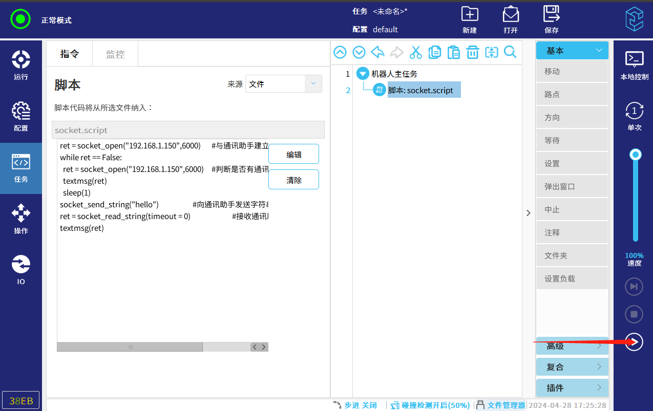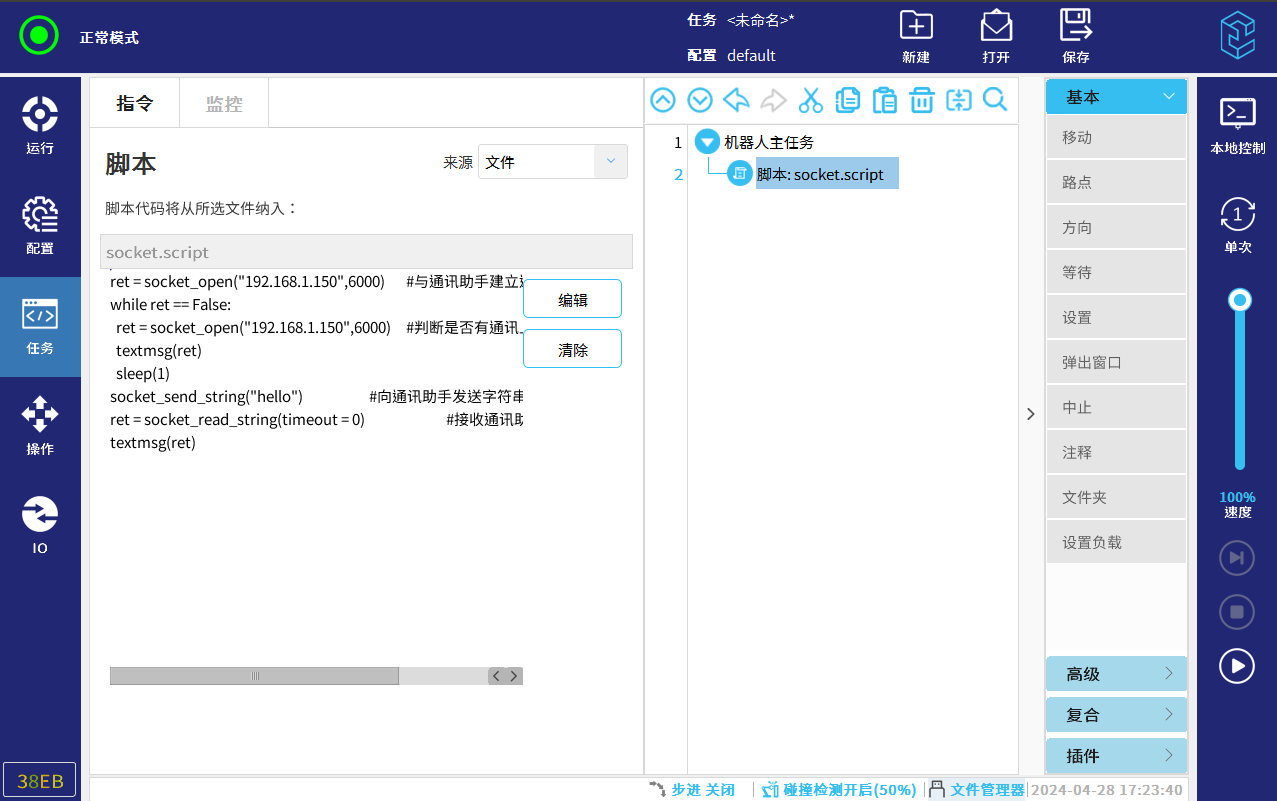 2.6. 编写通讯脚本。详情参考CS脚本手册-通讯目录下的socket,可在leyu.乐鱼(中国)官网下载。技术资料-leyu.乐鱼(中国)机器人