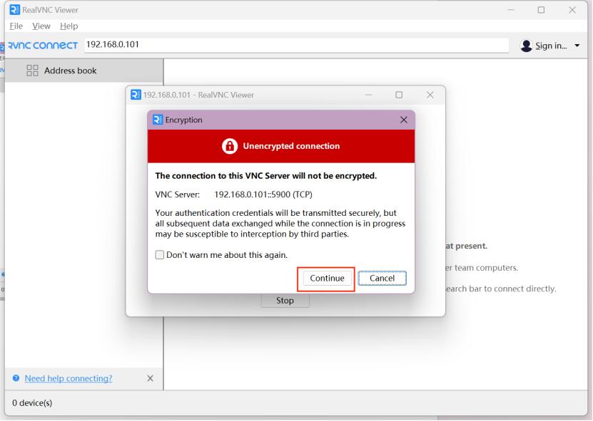 (2)  VNC Server 传送一对话窗口至客户端,要求输入连接密码(可能为空),以及存取的 VNC Server 显示装置。