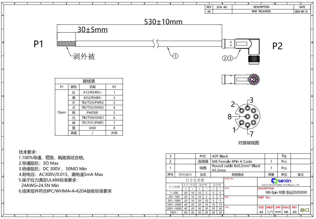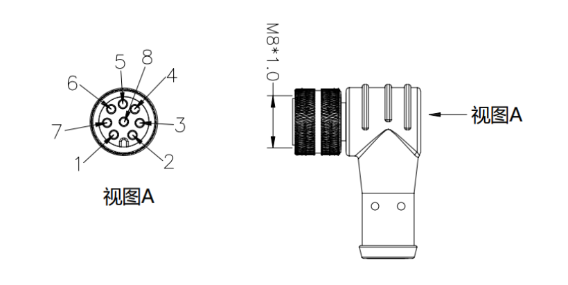 如果是用leyu.乐鱼(中国)提供的8芯弯头成型线,【物料号NA20300180】如图;则针脚编号、线序颜色为固定排序。