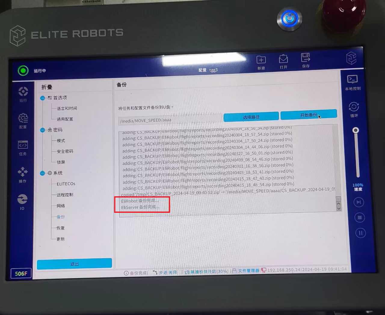 1、 备份功能导出的主要文件为机器人程序、配置文件(同型号可通用)以及当前机器人零位、DH参数(不通用);