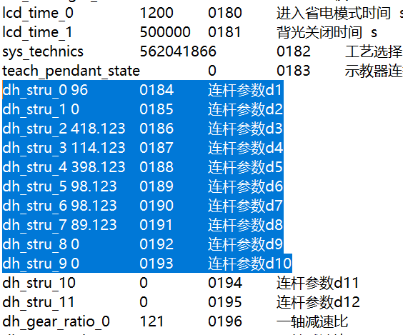 ②手动查看原机器人dh记录恢复后更改:参数设置--机械臂DH,点击左下角可修改,断电重启保存