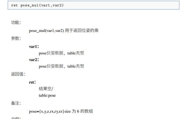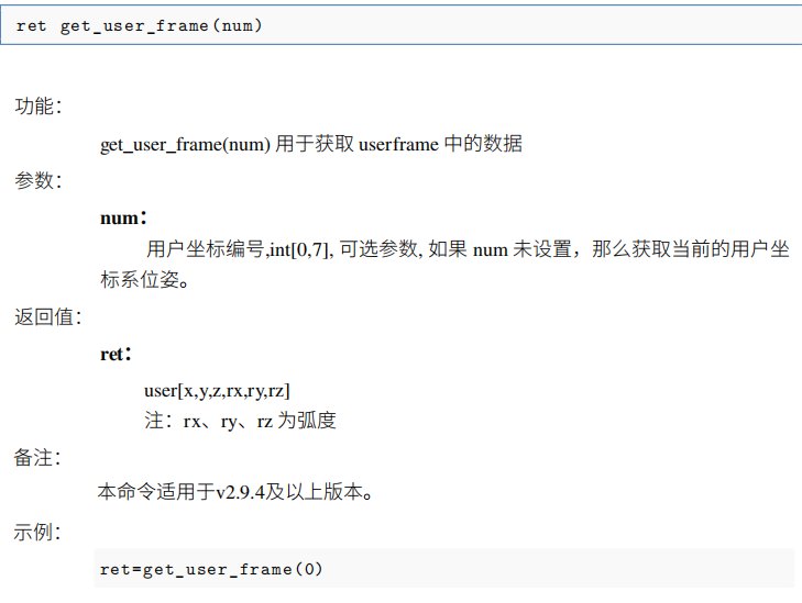 -- 将笛卡尔坐标 {X, Y, Z, RX, RY, RZ} 转换到用户坐标系 user1,结果存储在 user1_v1 中